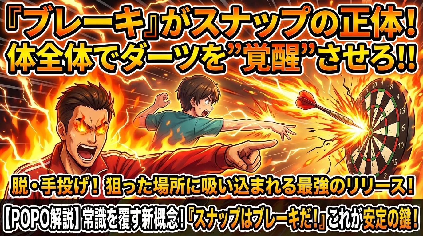 ダーツの安定感を左右する「スナップ」。その本質を理解しないままでは、いつまでも同じ壁にぶつかり続けるでしょう。POPO先生が提唱する「ブレーキスナップ」の概念こそが、君のダーツを劇的に変える鍵なんだ!